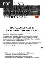 Analisis kesalahan berbahasa (error analysis) dalam media.